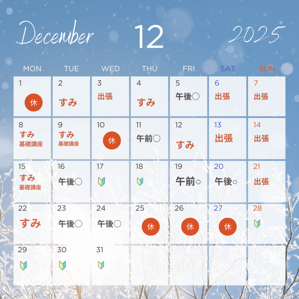 12月の営業カレンダー